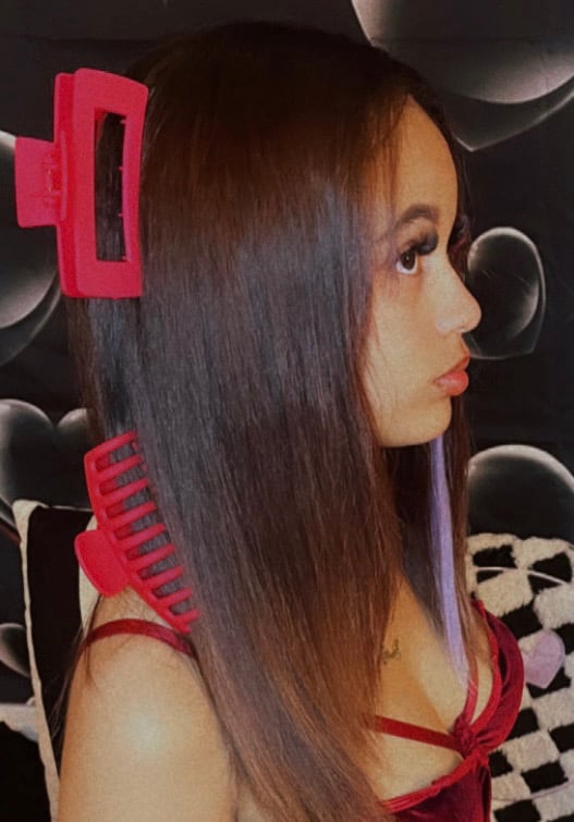 A decorative hair accessory, often made from metal alloy, here is a 2pack Vibrant Red claw clips . You can secure your hair with these claws or use it to put your hair up